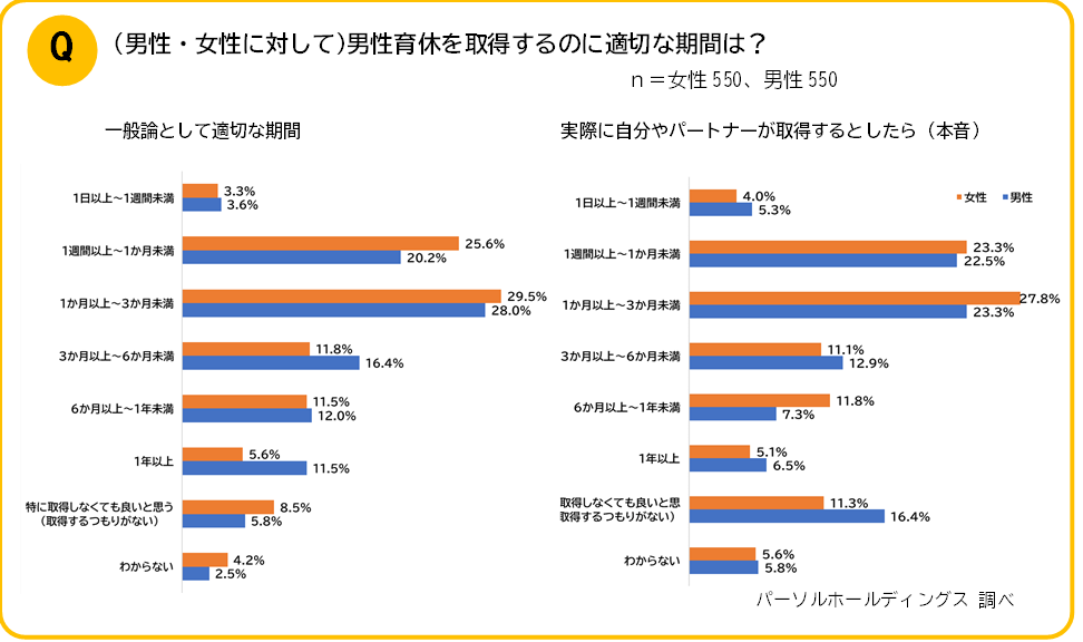 ◆適切な育休期間、男性は建前と本音の差が大きい