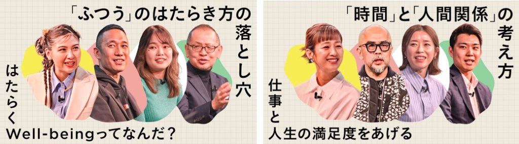 オリジナル番組では、『はたらくWell-being AWARDS』のなかで実施された2回のトークセッションの内容を配信。パネリスト同士で各々が考える“はたらくWell-being”について議論が交わされました。