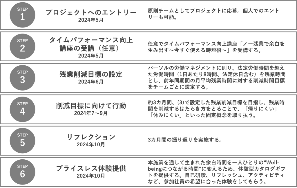 「YOHAKU(よはく)」は、DEI推進の目標である「多様な人材が活躍できる環境づくり」を目指し、長時間労働による「帰りにくい」「休みにくい」を取り除き、限られた時間の中で仕事も、趣味も、それ以外のことも実現できることを目的としたプロジェクトです。本プロジェクトにエントリーしたチームは3カ月間残業時間の削減に取り組み、生まれた余白(YOHAKU)の時間を一人ひとりの“Well-beingにつながる時間”に変えるため、体験型カタログギフトが提供され、プライスレスな体験を得られます。グループ全体から最大300名を対象として実施予定です。