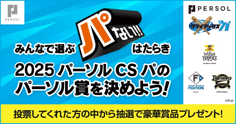 『2025 パーソル クライマックスシリーズ パ』開催記念「みんなで選ぶ“パない” はたらき投票キャンペーン」を実施 “パない”はたらき をした選手へ投票してパーソル賞を決めよう!~得票数上位選手の直筆サイン入りユニフォームや豪華賞品をプレゼント~