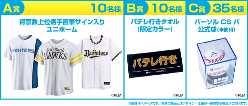 さらに、キャンペーンにご参加いただいたファンの中から抽選で『2025 パーソル クライマックスシリーズ パ』の得票数上位選手の直筆サイン入りユニフォームや豪華賞品をプレゼントいたします。※応募方法などの詳細は、以下特設サイトをご参照ください。
