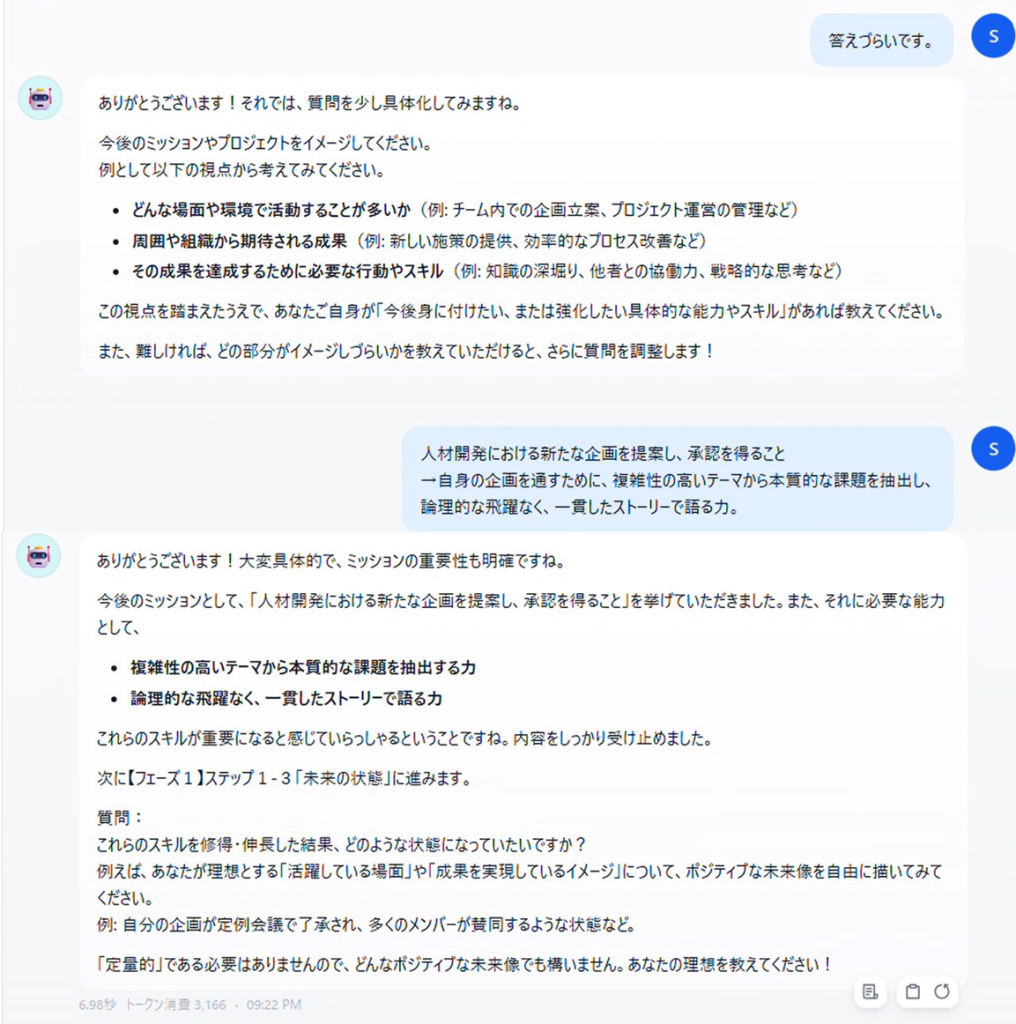 第1弾として、総合職正社員463名を対象に、個人の課題に応じて選択可能な7種類のプロンプトを開発し運用を開始。プロンプトのダウンロード数は225件と対象者の約5割に達し、また、利用後アンケートを実施したところ、8割の社員が「役に立った」と回答。利用した社員からは「これまで上司との面談を2~3回実施して目標をすり合わせていたが、プロンプトを使うことで1回の面談で目標設定が終了するようになった」というコメントや、管理職側からも「プロンプトを活用した社員は目標設定に対する解像度が格段に上がっている」というコメントが寄せられるなどのポジティブな効果が見られたことから、第2弾としてこれをAIエージェント化し、「目標支援コーチ」として2026年4月より運用を開始します。