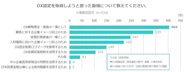 その他、上位の回答結果を見ると、DXを意識した事業の推進に加えて、企業イメージ向上を意識している企業が多いことがわかります。