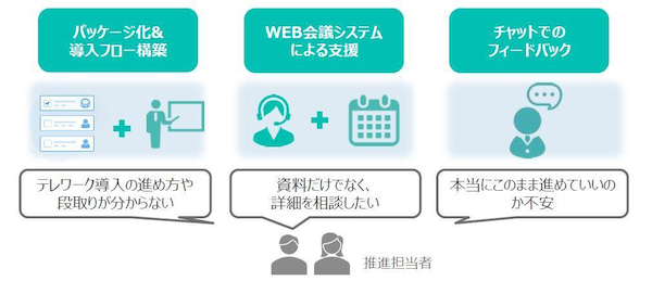 このような背景もあり、テレワークの導入を検討する企業は増えています。しかし、テレワークを導入する現場からは「社内の誰を巻き込めばいいのか」「何から検討したらいいのかわからない」といった声が聞こえてきます。