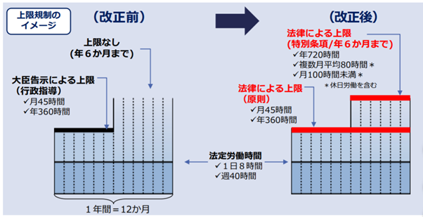 働き方改革に関連し、2019年に改正された「労働基準法」では、時間外労働の上限が法律で細かく規制されました。もし違反してしまった場合、企業のみならず現場の管理職も罰則対象となることから、これまで以上に厳密な労務管理が求められます。