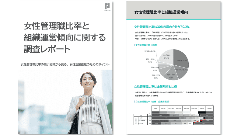 本冊子は、管理職900人への調査をもとに、企業規模別の女性管理職比率の実態と、女性管理職比率向上に向けた取り組みのポイントを整理しています。