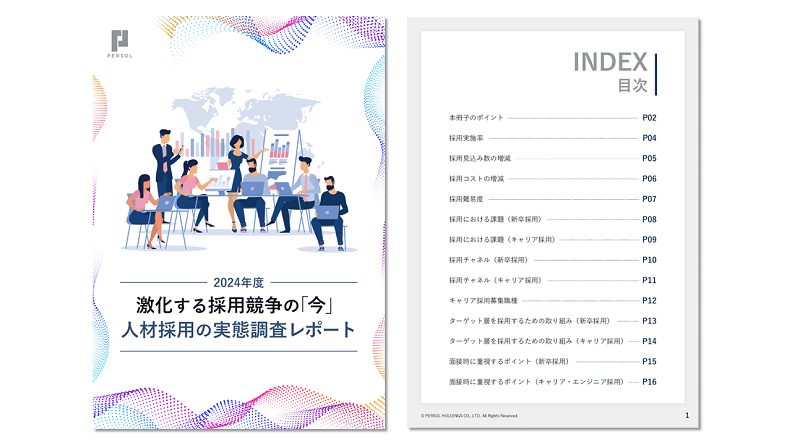 本冊子では、企業の経営層、管理職、および人材の採用・育成に携わっている人に対して採用活動に関するアンケート調査を行い、そのデータから実態や傾向をまとめました。企業の経営層、管理職、および人材の採用・育成に携わっている方はぜひご活用ください。