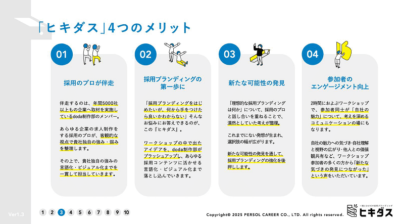「ヒキダス」は、パーソルが求人広告領域で培った知見を活用しながら、採用領域のプロと共に採用ブランディングをご支援するサービスです。