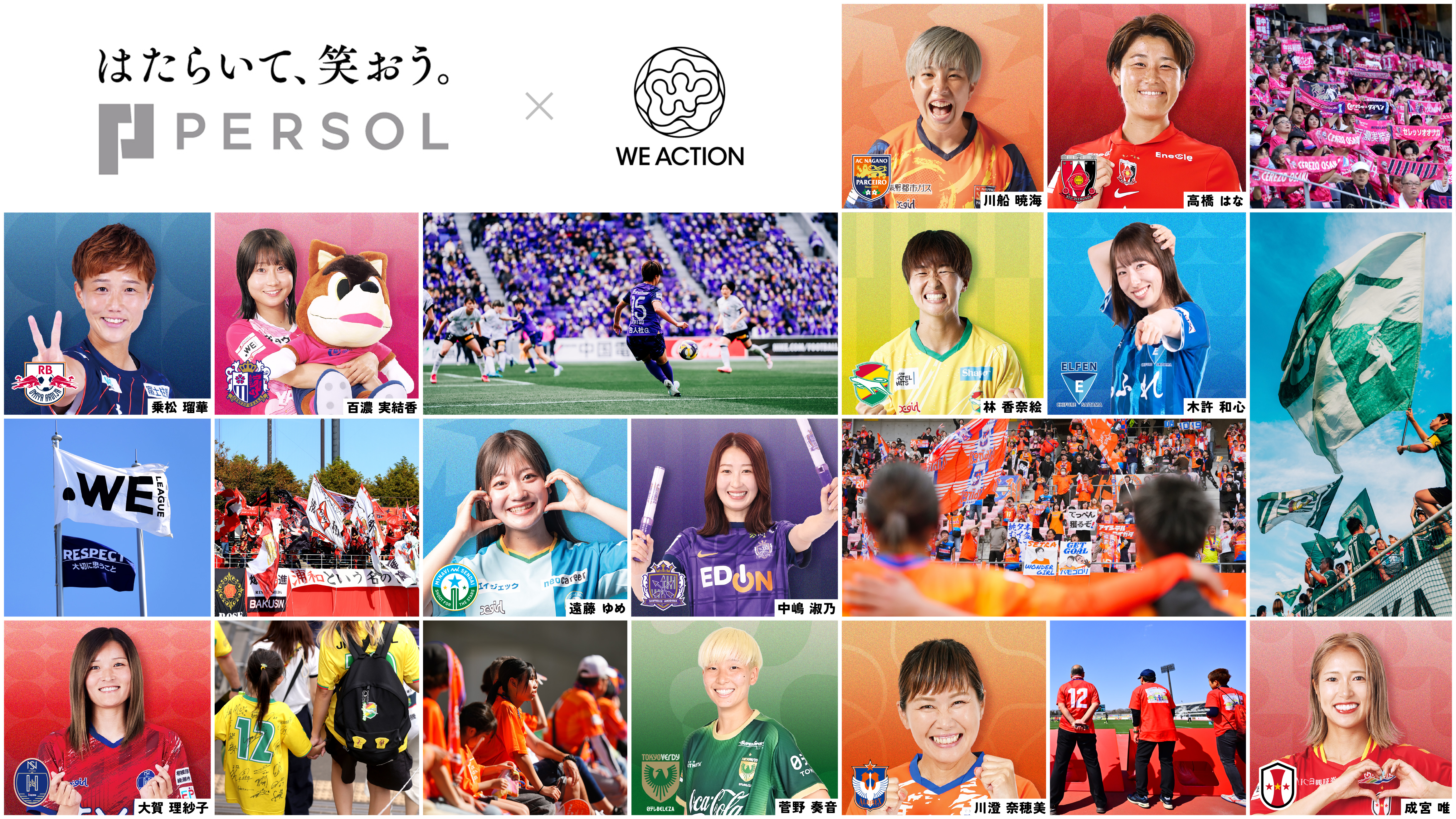 WE ACTIONとは、WEリーグに所属する選手、クラブ、そして、サポートするパートナー企業を始めとする様々な人が、リーグの理念「女子サッカー・スポーツを通じて、夢や生き方の多様性にあふれ、一人ひとりが輝く社会の実現・発展に貢献する。」の実現のために輪となり、私たちみんな(WE)で起こす行動(ACTION)です。