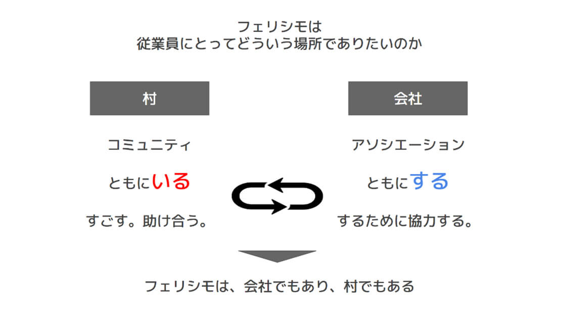 猪川:これは「いる」と「する」を理想的に循環させることを目的としています。会社というのは何かを「する」ために集まる組織ではありますが、この取り組みには「いる」だけで許される“村”でありたいとの思いが込められています。よく「いる」ことが“Well- being”なら、よく「する」ことは“Well-doing”で、この両者をうまく循環させるために、試行錯誤を重ねているところです。「いる」と「する」の循環、“村”でありたいというのは、会社として取り組みたいテーマでもあるんです。