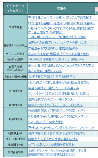 こういった取り組みはウェルビーイング委員会が中心となって企画・実施されるのですが、以下の要素を意識しています。