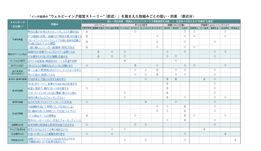 - 社員の健康だけでなく「社会的に満たされた状態」が業績向上に重要と位置づけています