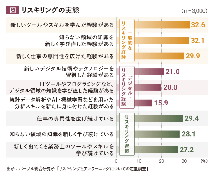 - リスキリングとは、時代や業務の変化に合わせて新たなスキルを習得することです